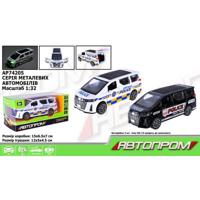 Машина «Поліція» металева 1:32 зі світолом, звуком та дверима, що відчиняються, на батарейці, у коробці 15х6,5х7 см