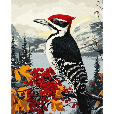 Картина за номерами «Дятел на гілці» 40х50 см, ТМ Ідейка