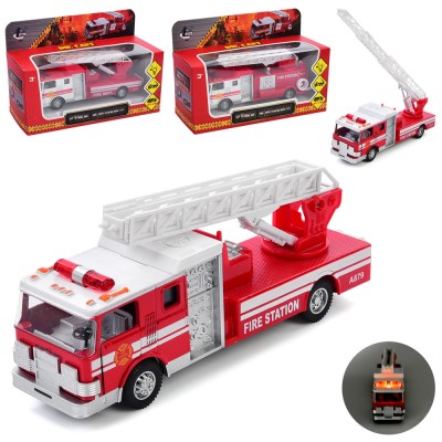 Пожежна машина 17 см металева інерційна зі звуком, світлом, рухомими деталями, гумовими колесами та дверима що відчиняються, на батарейці, в асортименті, у коробці 22,5х14,5х16,5 см