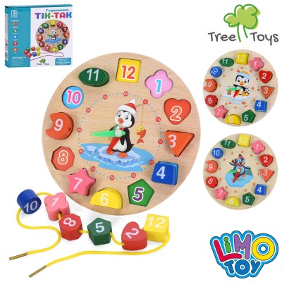 Годинник 17,5 см дерев'яний з рамкою-вкладишем, фігурами-цифрами, шнурівкою, в асортименті, у коробці 18х17,5х2,5 см.