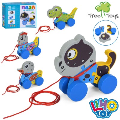Каталочка «Звірятко» дерев`яна з пазлом, в асортименті, у коробці 20х16х6 см
