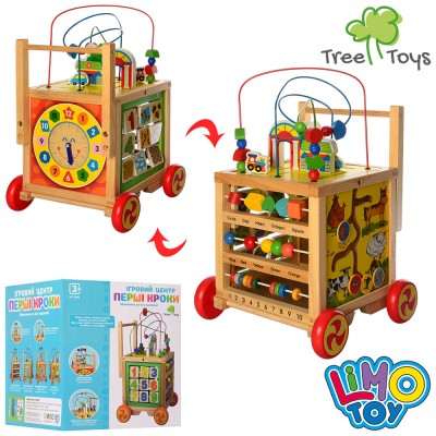 Центр розвиваючий дерев'яний: лабіринт, цифри, годинник, рахівниця, у коробці 28х29х33 см