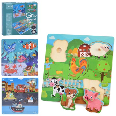 Рамка-вкладиш з ручкою на 5 фігур з ігровим полем 15х15 см, в асортименті, у коробці 15,5х15,5х2,5 см