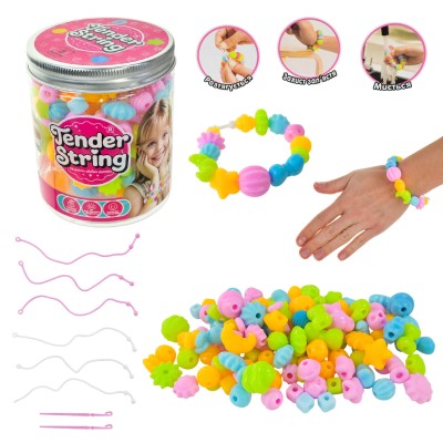 Набір для створення браслетів: силіконові намистини, гумки, гачок, у баночці 8х8х10 см