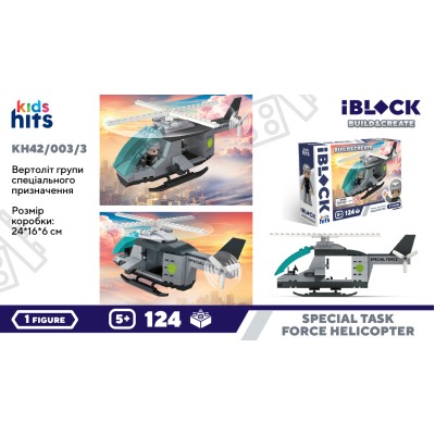 Конструктор «Гелікоптер» на 124 деталіз фігуркою, у коробці 24х16х6 см, IBLOCK JUNIOR