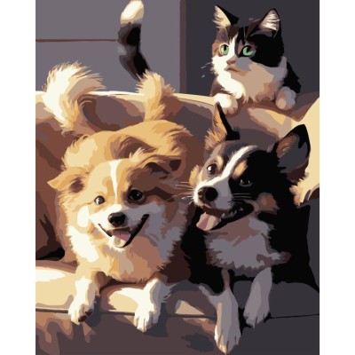 Картина за номерами «Дві собаки і кіт» 40х50 см, ТМ Strateg