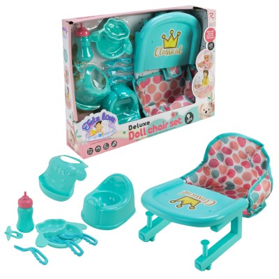 Аксесуари для ляльки: стільчик 12х14 дюймів, столові прибори, горщик, соска, пляшечка, у коробці 44х9х32,5 см