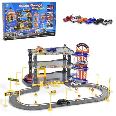 Гараж 3-поверховий з 6 машинками по 6 см, ліфтом та дорожніми знаками, у коробці 50х32,5х6,5 см