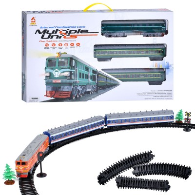 Залізниця 142х98 см зі світлом та звуком: локомотив та 2 вагони, на батарейці, в асортименті, у коробці 56,5х32х7 см