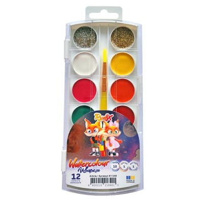 Фарби акварельні на 12 кольорів з пензликом, пластик, RUDIX