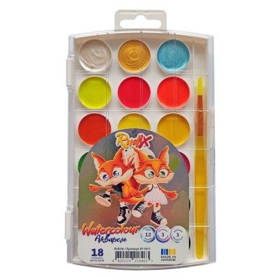 Фарби акварельні на 18 кольорів флурисцентних з пензликом, пластик, RUDIX
