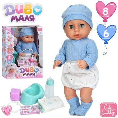 Пупс 40 см сенсорний музичний зі звуком, п'є, пісяє, реагує на соску, горщик, пляшечку, підгузник, кубик, на батарейках, у коробці 38х28х15,5 см