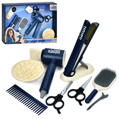 Набір перукаря: фен, насадки, плойка, гребінець, шпильки, ножиці, на батарейках, у коробці 46х32х6,5 см