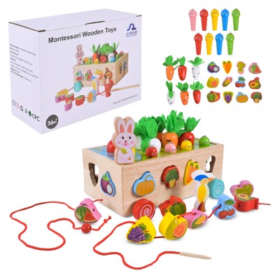 Сортер дерев'яний 21,5х16х9 см на 31 елемент з рибалкою та шнурівкою, у коробці 22,5х10х17 см