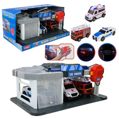Паркінг 35х21х15 см зі світлм, звуком та 3 машинками по 13 см, на батарейці,у коробці 38х23х19 см