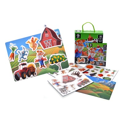 Гра магнітна «Ферма»: дошка 18х5х22,5 см, 32 магніти та книга із завданнями, у коробці 18х22,5х5 см