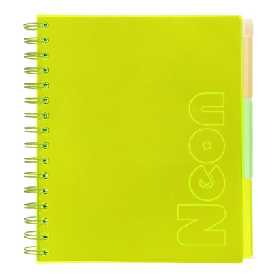 Зошит з роздільниками «NEON» В5 на 120 аркушів у клітинку з пластиковою обкладинкою на спіралі збоку, жовтий, ТМ Buromax