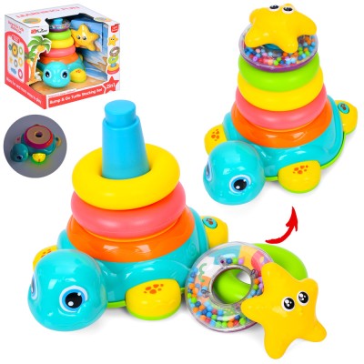 Пірамідка-каталочка «Черепаха» 22 см музична зі світлом на 5 кілець з брязкальцем, на батарейках, у коробці 24,5х21,5х25 см.