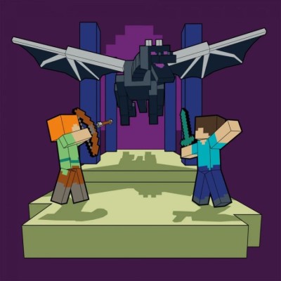 Картина за номерами «Майнкрафт. Стів та Алекс бій з драконом» 25х25 см, ТМ SANTI