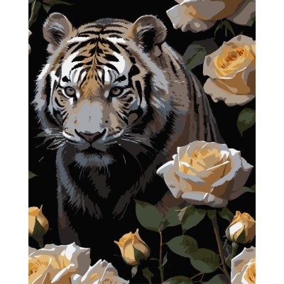 Картина за номерами «Тигр у трояндах» 40х50 см, ТМ Strateg