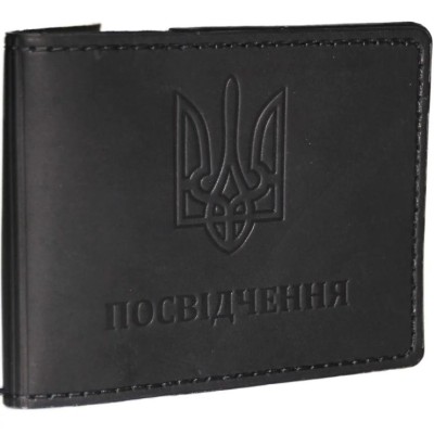 Обкладинка на посвідчення 10,5х8 см зі шкіри, чорна