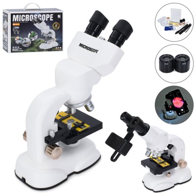 Мікроскоп 23х11х25 см зі світлом та склом, інструментами, тримачем для телефону, збільшення 400Х/800Х/1600Хна батарейці, у коробці 37х28,5х11,5 см