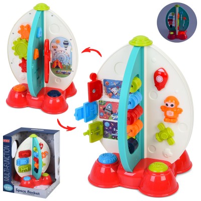 Бізі-ракета 18х18х25 см музична зі світлом, шестернями, засувками, лічильником, лабіринтом та іншими рухомими деталями, на батарейці, у коробці 21х28х20,5 см.