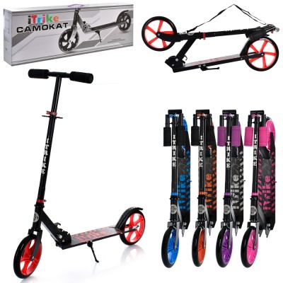 Самокат 2-колісний на металевій рамі, колеса з ПУ 200 мм, кермом 90-100 см, підніжкою 30-10 см, підставкою та замком, в асортименті, у коробці