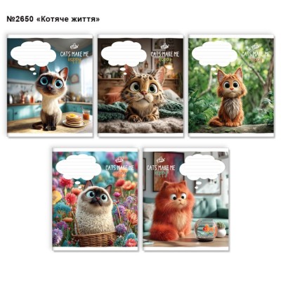 Зошит на 12 аркушів у клітинку «Котяче життя» №2650, ТМ Brisk