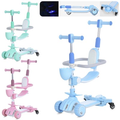 Самокат-велобіг 5 в 1 3-колісний на алюмінієво-пластиковій рамі, колеса ПУ зі світлом, передня 115 мм, заднє 85 мм, підніжкою 27х13 см та батьківською ручкою