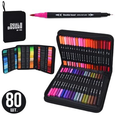 Набір скетч маркерів на 80 кольорів двасторонніх, у пеналі 19х26х4,5 см