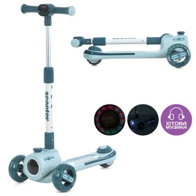 Самокат 3-колісний на металопластиковій рамі, 2 передні 125 мм зі світлом, заднє 90 мм зі світлом, кермо 62-80 см, підніжка