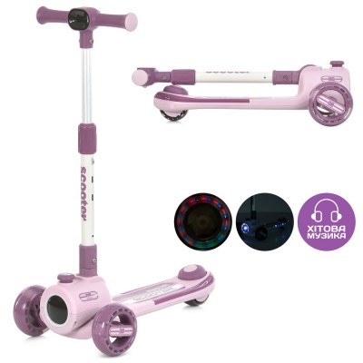 Самокат 3-колісний на металопластиковій рамі, 2 передні 125 мм зі світлом, заднє 90 мм зі світлом, кермо 62-80 см, підніжка