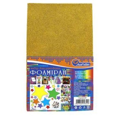 Фоаміран A4 1,7 мм з глітером та клееєм жовтий, 10 аркушів, ТМ J.Otten