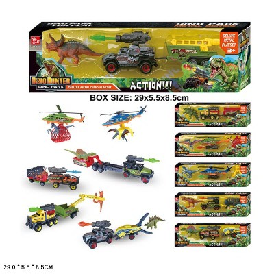 Ігровий набір металевий: динозавр та машина з причепом, в асортименті, у коробці 29х5,5х8,5 см