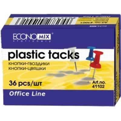 Кнопки-цвяшки кольорові по 36 шт. у картонній коробці, ТМ Economix
