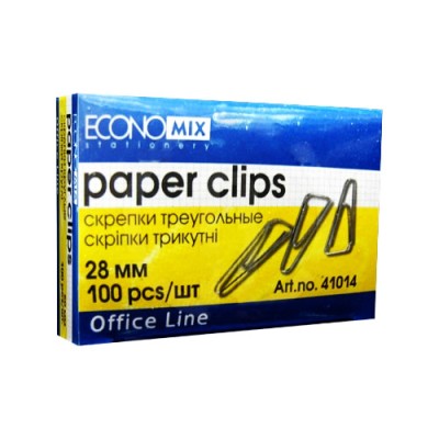 Скріпки нікельовані трикутні 28 мм, 100 шт в упаковці, ТМ Economix