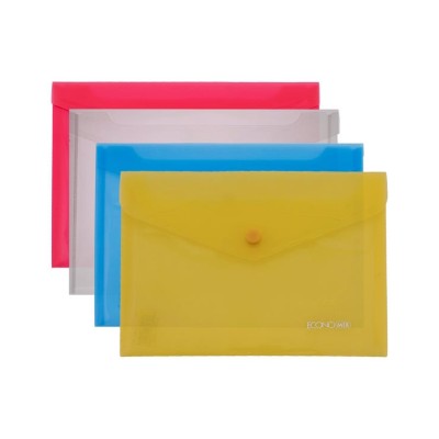 Папка-конверт на кнопці В5 прозора з фактурою «глянець», в асортименті, ТМ Economix