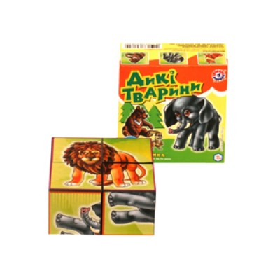 Кубики «Дикі звірі» з 4 елементів, у коробці 8х8х4 см, ТМ Технок