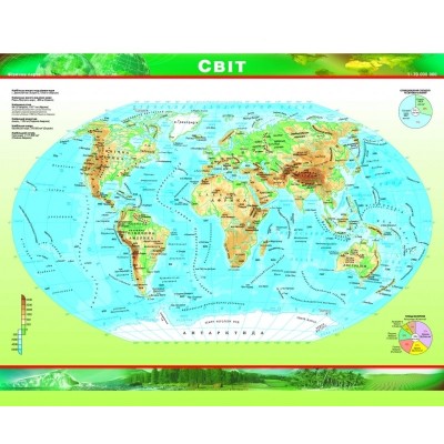 Двобічна карта «Політична+Фізична світу», 1:70 000 000» 44х53 см ламінована, ТМ Картографія