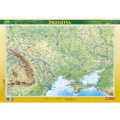 Фізична карта України 1:2 500 000 ламінована, 66х47 см, на українській мові, ТМ Картографія