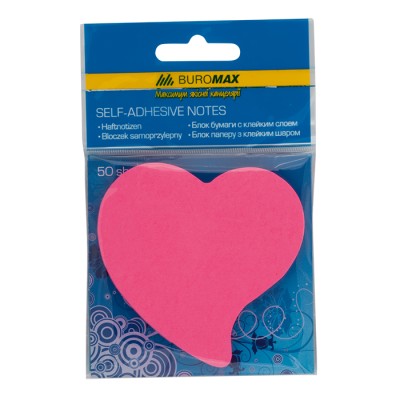 Блок паперу клеєний «Серце» 50 аркушів неон, в асортименті, TM Buromax