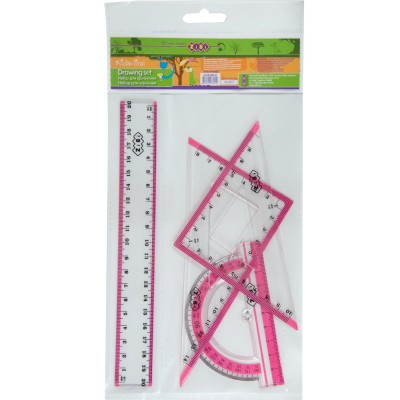 Набір: лінійка 20 см, 2 косинця, транспортир, з рожевою смужкою