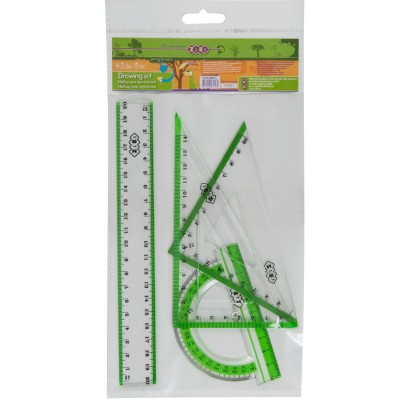 Набір: лінійка 20 см, 2 трикутники, транспортир, з салатовою смужкою, ТМ ZiBi