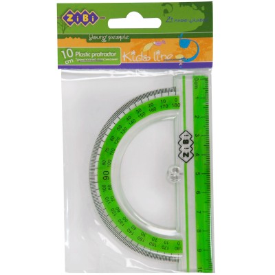 Транспортир 10 см 180° з салатовою смужкою, в блістері, ТМ ZiBi