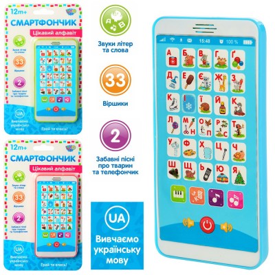 Телефон «Абетка» музичний з українською озвучкою, на батарейці, в асортименті, на планшетці 13х23 см