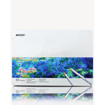 Олівці «Reffine» на 50 кольорів шестигранні, у металевій упаковці, ТМ Marco