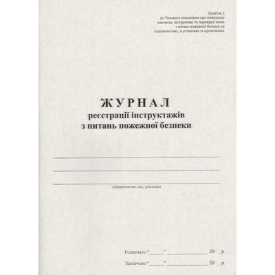 Журнал реєстраії інструктажу з питань пожежної безпеки на 48 аркушів, офсет