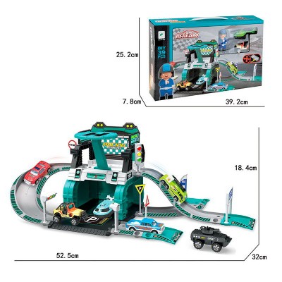 Паркінг 2-поверховий на 39 деталей з вертольотом, металевою машинкою та фігуркою 9 см, у коробці 39,5х25,5х8 см