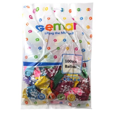 Кульки повітряні «Happy birthday» 30 см різнокольорові , 100 шт в упаковці, Gemar